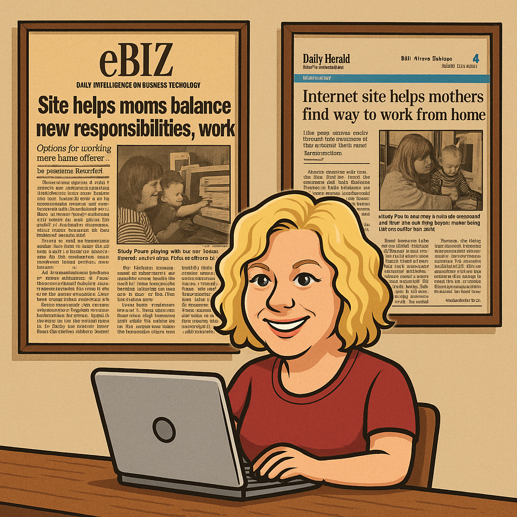 👆 That’s me up there — Stacy Perez — captured in a fun illustration that blends my present with my past. Those newspapers in the background? They represent where my journey began. Back in 2000, I launched one of the very first work-from-home mommy websites, long before “remote work” was a buzzword. That leap turned into a lifelong mission: helping entrepreneurs, small businesses, and professionals grow through smart, strategic content and digital marketing.
